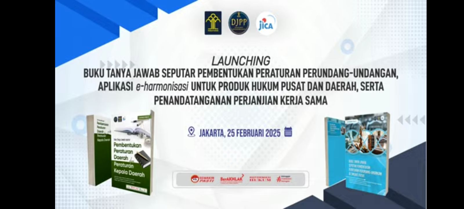Direktorat Jenderal Peraturan Perundang undangan Kementerian Hukum selaku Pembina Perancang Peraturan Perundang undangan menyelenggarakan launching Buku Tanya Jawab Peraturan Perundang undangan sekaligus aplikasi e_harmonisasi pada hari Selasa, 25 Feb 2025 secara hibryd. Kegiatan ini terselenggara atas kerjasama DJPP Kementerian Hukum dgn JICA. Acara menghadirkan kynote speak Menteri Hukum dan Direktorat Jenderal Kerja Sama Luar Negeri Kementerian Hukum Jepang serta PIC JICA di Indonesia.