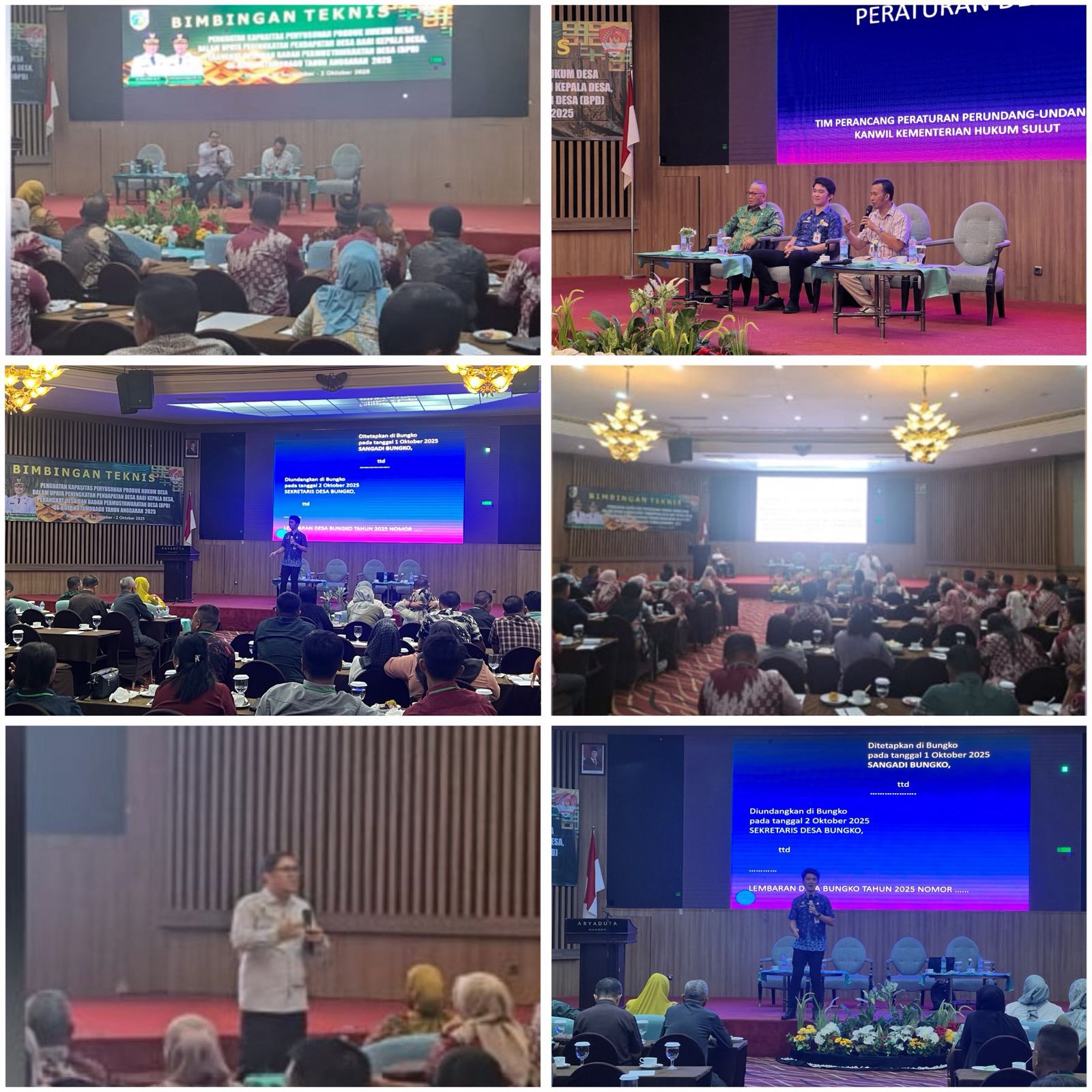 Manado, 1-2 Oktober 2025 – Pemerintah Kota Kotamobagu menyelenggarakan Bimbingan Teknis Penguatan Kapasitas Penyusunan Produk Hukum Desa bagi Kepala Desa, Perangkat Desa, dan Badan Permusyawaratan Desa se-Kota Kotamobagu Tahun Anggaran 2025. Kegiatan ini bertujuan untuk meningkatkan kemampuan dan pengetahuan aparatur desa dalam menyusun produk hukum desa yang berkualitas dan sesuai dengan peraturan perundang-undangan yang berlaku.