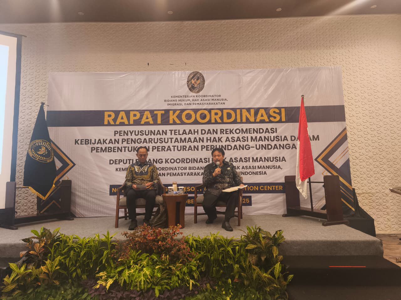 Bogor, 7-9 Oktober 2025 – Kementerian Koordinator Hukum, Hak Asasi Manusia, Imigrasi dan Pemasyarakatan (Kemenkumhamim) menyelenggarakan Rapat Koordinasi (Rakor) Deputi Hak Asasi Manusia dengan tema “Harmonisasi Produk Peraturan Perundang-undangan yang Berspektif Hak Asasi Manusia”. Kegiatan ini berlangsung selama tiga hari, dari tanggal 7 hingga 9 Oktober 2025, di Novotel Hotel, Bogor.